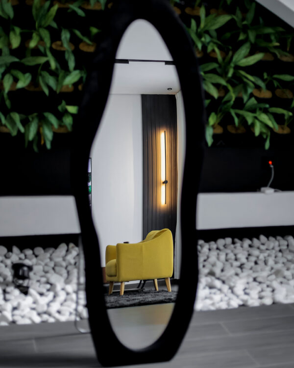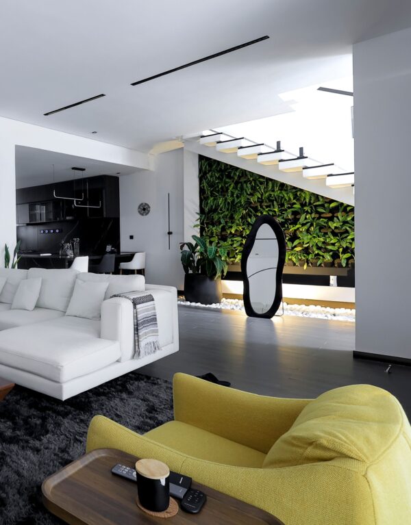 mpeta’s living room features a vertical garden, bringing nature indoors.